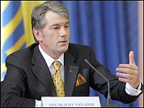 «Минув тиждень відколи Верховна Рада проголосувала за проведення президентських виборів 25 жовтня, однак досі не було повідомлень про те, що президент оскаржуватиме це рішення у Конституційному суді. Раніше юристи секретаріату президента заявляли, що радитимуть Віктору Ющенку звернутися до Конституційного суду, оскільки, на їхню думку рішення парламенту суперечить чинній Конституції. Натомість Віктор Ющенко заявив, що готовий іти на вибори будь-коли, але одночасно із парламентом. При цьому президент наполягає, аби були запроваджені відкриті виборчі списки та скасована депутатська недотороканість. Схвально про ідею одночасних виборів поки що відгукуються тільки у Партії регіонів – саме такі заклики лунали на акціях протесту, що пройшли нещодавно в Україні. Натомість Блок Тимошенко виступив проти будь-яких дострокових виборів». Ющенко іде на вибори