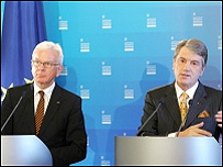 Президент Віктор Ющенко під час зустрічі з головою Європарламенту Гансом Ґертом Поттерінгом заявив, що готовий взяти участь у дострокових президентських виборах. Раніше він казав, що умовою є одночасні вибори до Верховної Ради. Ющенко вважає також, що одночасні дострокові парламентські та президентські вибори заспокоїли б ситуацію в Україні. За одночасні вибори президента і Ради висловився і віце-спікер від БЮТ Микола Томенко. В ефірі 5 каналу він сказав, що треба або ухвалити програму виходу з кризи, або обрати нову владу. Як раніше повідомлялося, офіційно БЮТ є проти дострокових виборів. Президент Європейського Парламенту Ганс-Герт Поттерінг закликав українську владу до єднання, сказавши під час свого виступу у Верховній Раді, що постійна політична нестабільність є серйозною проблемою для країни і уповільнює процес реформ. Він також вважає, що Україні та ЄС потрібно створити спільну стратегію енергетичної безпеки на принципах Європейської енергетичної хартії. |