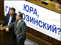 Народні депутати від Партії регіонів розвіcили у сесійній залі Верховної Ради плакати і заблокували початок вечірньої сесії парламенту. На трибуні президії розмістили плакат «Юра, де Лозінський?» (тобто, йдеться про звернення до міністра внутрішніх справ Юрія Луценка з приводу місця перебування колишнього депутата з фракції БЮТ Віктора Лозінського). У той же час над кріслами керівництва парламенту розміщений плакат «Партія регіонів захистить соціальні гарантії людей». У порядку денному позачергового засідання ВР три питання: законопроект, який стосується рекапіталізації банків, зміни до держбюджету в частині виділення коштів на проведення фінальної частини чемпіонату Європи з футболу 2012 року та проект закону про внесення змін до деяких законодавчих актів щодо виборів Президента України. Сьогодні ж лідер Партії регіонів Віктор Янукович заявив, що очолювана ним парламентська фракція продовжить блокувати роботу парламенту, доки першим питанням не буде розглянутий законопроект щодо підвищення прожиткового мінімуму та розміру мінімальної заробітної плати. Яценюк: національні змагання – хто кого перехитрить