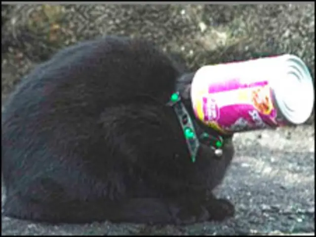 Вона, як вважається, вилизувала бляшанку з котячею їжею, і не змогла витягти з неї голови.