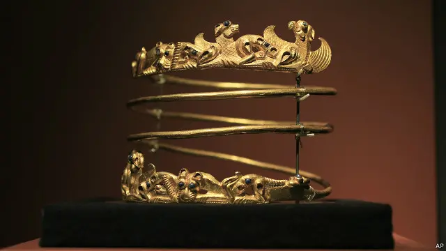 До експозиції виставки "Крим – золотий острів у Чорному морі", яка у липні минулого року почала подорож Європою, входять 609 музейних предметів з фондів шести музеїв України, чотири з яких розташовані у Криму. Серед експонатів – легендарні скіфські ювелірні вироби.