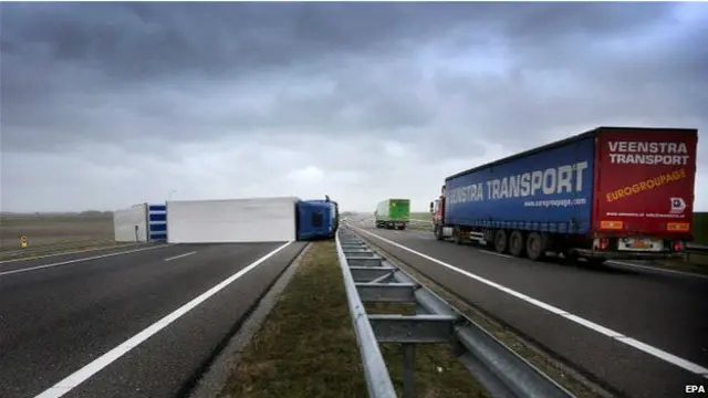 У Нідерландах максимальна швидкість вітру сягнула 120 км/год. На дорогах країни можна було побачити перевернуті вантажівки.