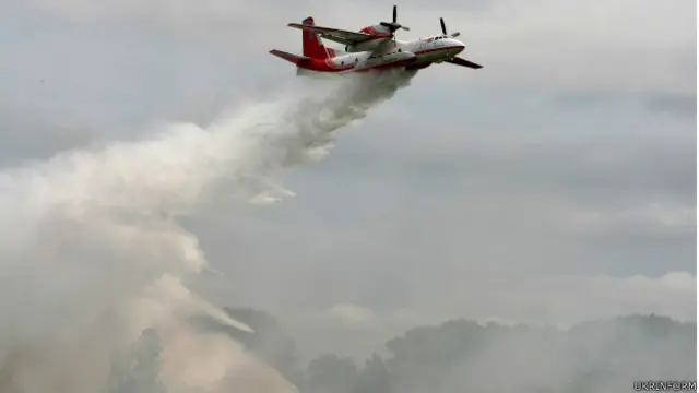 На місці, за його словами, працюють понад 200 рятувальників, 35 одиниць техніки, 2 літаки АН-32 П та вертоліт з водозливним пристроєм.