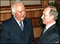 Бі-Бі-Сі: Чи мається на увазі сьогоднішня політика Росії, яку багато грузинських політологів називають політикою подвійних стандартів також належить до категорії віроломства? Едуард Шеварднадзе: Росія зробила усе, щоб ми втратили Абхазію. Але я вважав таким чином, що рано чи пізно Росія прокинеться. Не один керівник, так інший. Ще Єльцин був президентом, коли в час вступу Грузії в СНД багато керівників країн мене підтримали і тиснули на нього, щоб він швидше вирішив питання Абхазії. Вони вважали, що таке може статися й в їхніх країнах. Тоді Єльцин дав чесне слово, що зробить це. А через два місяці пішов у відставку. Прийшов Путін, людина, з якою працювати можна. Він не "держиморда", не шовініст. Я наведу такий приклад: ми зустрічаємося в Сочі. Путін каже: "Залізниця працює від Сочі до Сухумі, але бракує вантажів, пасажирів. Вона не прибуткова. Дайте нам можливість продовжити колію до Інгурі а потім до Самтредія. А це означає, що сполучення вже буде до Тбілісі, Єревану, Баку – це буде повноцінна залізниця. Я йому кажу: "Я дозволяю вам побудувати перші 12 кілометрів, лише гарантуйте безпеку і поверніть біженців до Галльського району». Район дуже заможний, територія велика, в радянські часи там мешкали близько 100 тисяч людей. Путін відповів, що це законно, і він це зробить і безпеку гарантуватиме. Справді, через короткий час він через своїх людей оголосив, що галльські мешканці можуть повернутися в район. Зараз там, якщо я не помиляюсь живе близько 70 тисяч людей. Це ж велика справа, це база для подальшої роботи – з керівництвом і народом Абхазії. Ось тоді Путін так визначився з цим рішенням. Тому я й кажу в книзі і часто на телебаченні – з Путіним працювати можна. Це людина яка мислить логічно, розуміє співрозмовника і готова схвалити рішення прийнятне не лише для Росії, але й для партнера. Бі-Бі-Сі: Чому тоді ніяк не вдається вирівняти ці взаємини? Можливо грузинській владі треба йти на якісь компроміси чи хоча би пом’якшити риторику щодо Росії? Едуард Шеварднадзе: Треба враховувати, що не лише Росія потрібна Грузії, але й Грузія потрібна Росії. Отже є можливість домовитися. І не обов’язково зраджуючи національні інтереси наприклад прагнення вступити в НАТО – Росія сама розвиває взаємини з тією структурою. Просто треба набратися терпіння, зустрічатися, шукати взаємоприйнятні рішення і за усіляку ціну домовитися. | Також на цю тему Ганапольський: Про зустріч Путіна та Саакашвілі15 червня 2006 | ДОКЛАДНО Росія та Грузія намагаються покращити взаємини14 червня 2006 | Головна сторінка Грузія звинуватила Росію у підтримці Осетії31 травня 2006 | Головна сторінка Саакашвілі звинувачує Росію у спробах тиску07 травня 2006 | Головна сторінка Російський уряд заборонив імпорт Боржомі05 травня 2006 | Головна сторінка Молдовське та грузинське вино зникло в Росії05 квітня 2006 | Головна сторінка Росія виведе війська з Грузії у 200731 березня 2006 | Головна сторінка | ||||||||||||||||||||||||||||||||||||||||||||||||||||||||||||||||||||||||||||||||||