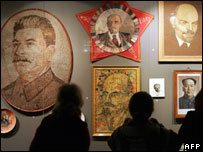 Музейна експозиція була підготовлена з колекцій, які давно лежали у архівах, або взагалі ніколи не виставлялися. Серед інших незвичних експонатів: портрет Леніна з зерна та срібна копія нафтової вежі азербайджанських працівників, яку вони виготовили у 1922 році. Експонується також відбійний молот, яким працював Алєксєй Стаханов. Відомо, що лише Сталін отримав 20 тисяч подарунків на своє 70-річчя. Як зазначають кореспонденти багато старших відвідувачів відвідували виставку аби ностальгічно пригадати свою молодість. | |||||||||||||||||||||||||||||||||||||||||||||||||||||||||||||||||||||||||||||||||||
