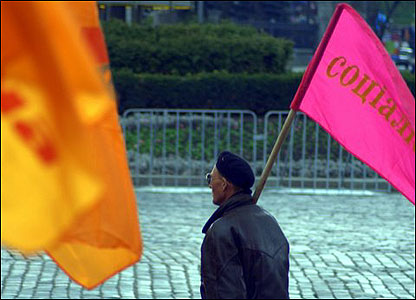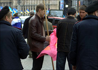 Демонстрант з прапором Соціалістичної партії ''заблукав'' до помаранчевих на Європейську площу.