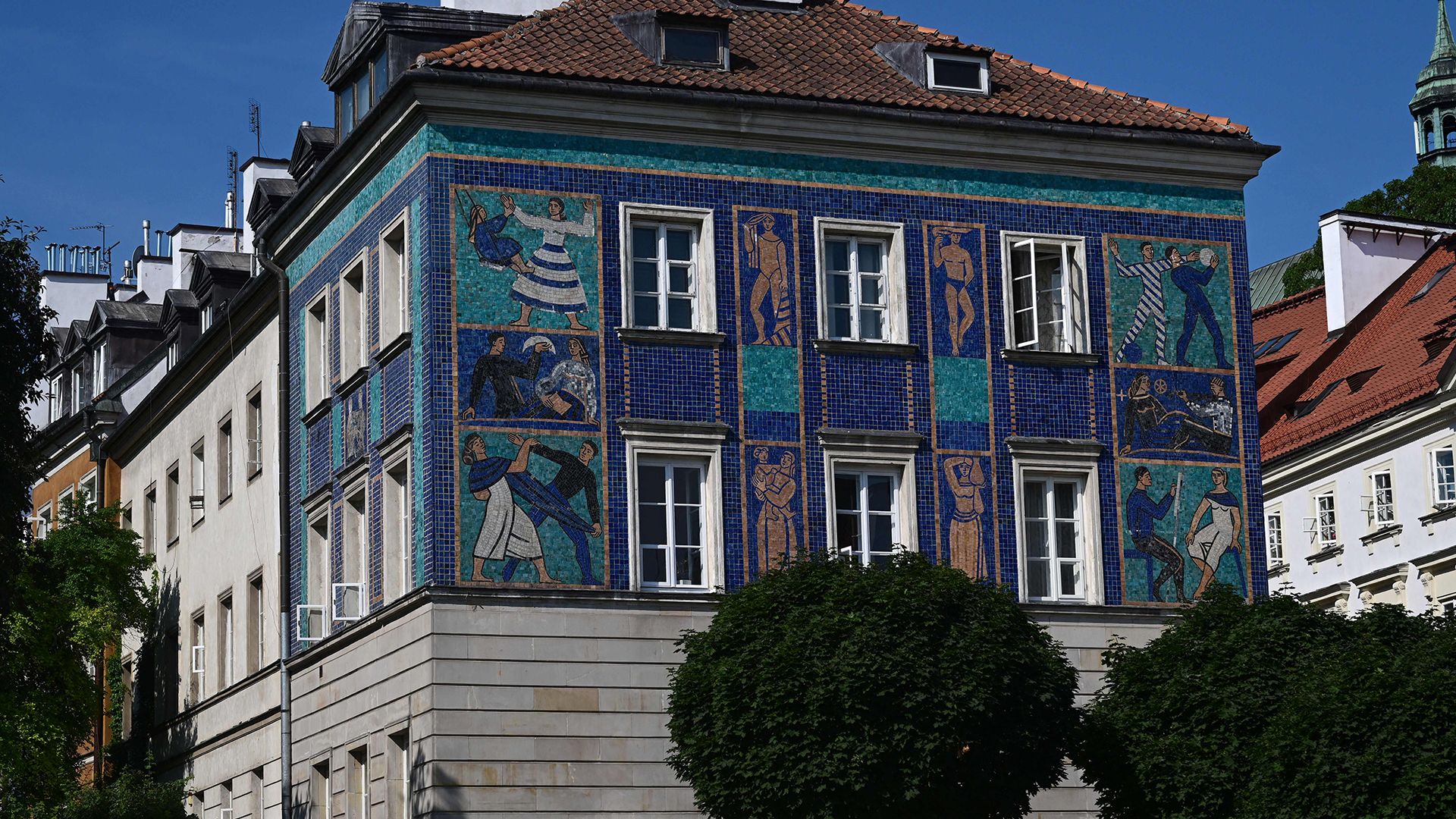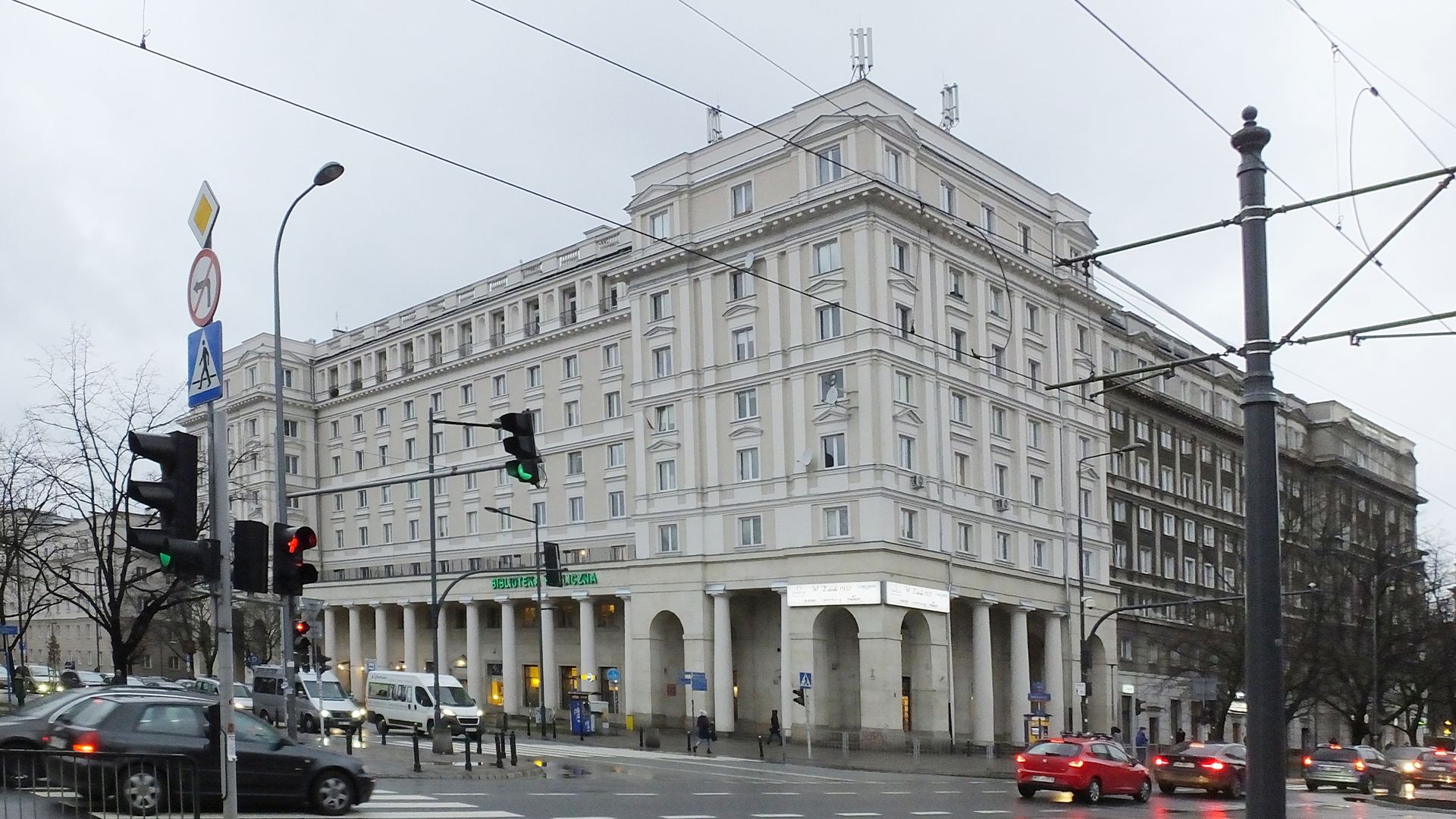 На фасаді будинку, що стоїть на розі вулиць Новий Швят і Єрусалимські алеї, досі зберігся напис “Весь народ відбудовує свою столицю”.
