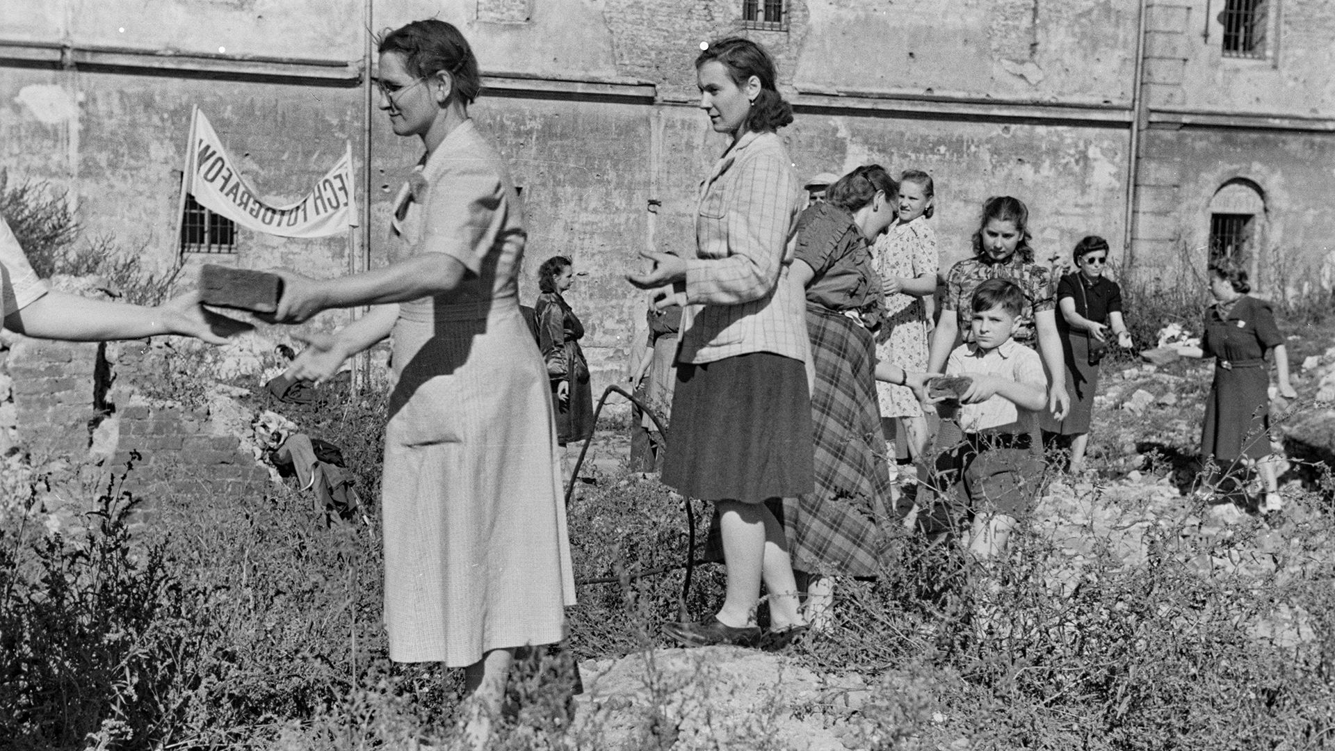 Працівники єврейської організації розчищають Варшавське гетто від руїн, 1947 (фото Альфреда Функевича, Музей Варшави)