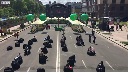 Євромістечко, обладнане багатьма фотозонами, тож відвідуваі масово робили селфі, фотографувалися з копією головного призу "Євробачення", слухали музику і стояли у черзі, щоб побачити сукню Джамали.