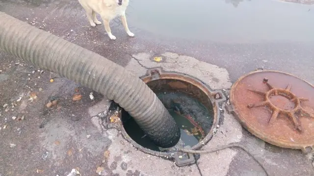 Весь цей час комунальні служби відкачують нечистоти з каналізації.