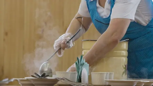 Чиновник розповів про візит до дитячого табору "Брусіно", що на Донеччині, де у харчоблоці є пачки з одноразовими рукавичками, і всі працівники, коли виходять за межі кухні, їх знімають, а коли повертаються - одягають нові.