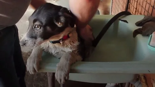 Собаки радо підходять до людей, очікуючи від них смаколиків, але пильність не втрачають. При спробі волонтера накинути на неї зашморг, пес спритно тікає, хоча продовжує спостерігати за прибульцями з безпечної відстані.