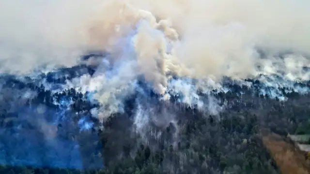 "Прогноз вітру на сьогодні для гасіння пожежі не дуже хороший - можливі до 15-20 метрів/секунду. Це сильний вітер, вогонь може поширюватися ривками, прориваючись на нові ділянки - і це ризики", - зазначив міністр.
