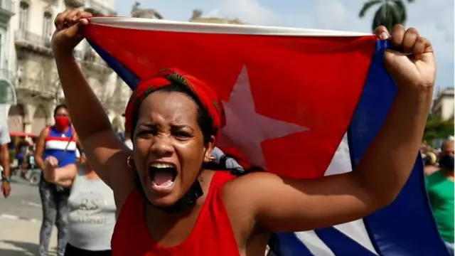 Вперше за понад 60 років тисячі протестувальників вийшли на вулиці приблизно у двадцяти містах по всьому острову, скандуючи "Свобода!" і "Геть диктатуру!". Президент Куби Мігель Діас-Канель закликав своїх прихильників також вийти на вулиці, щоб протистояти демонстрантам.
