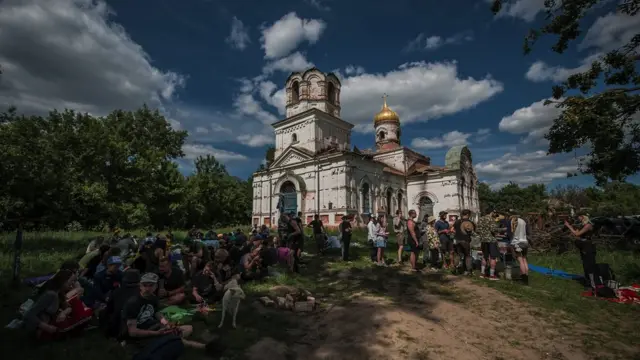 Волонтери вже прибрали значну частину сміття біля церкви, а густа висока трава закрила обгорілу землю. Нині у селі тихо, хіба неймовірно голосно і нестерпно гудить мошкара, від якої неможливо ніяк відбитися.