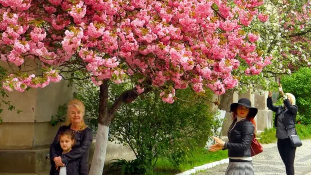 Посмотреть на массовое цветение розовых деревьев ежегодно приезжают десятки тысяч туристов из Украины и из-за рубежа.