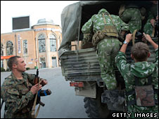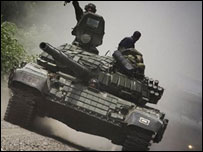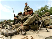 Незалежні Бі-Бі-Сі та інші ЗМІ непомітно для слухачів виконали цікаву роботу: забалкали тему і відвели увагу від головного питання – Хто влаштував криваву різню у Цхінвалі! Якщо геноцид влаштував Саакашвілі, чому його не судитимуть у Гаазі? Лицемірство Європи – відразливе! А як ви ставитесь до того,, що замість надавати допомогу від повені у Західній Україні – МЧС Росії допомагає у Південній Осетії? До Заходу: Можливо, ви маєте певну рацію, коли не пускаєте Грузію та Україну до ПДЧ. Можливо, у вас є право берегти себе, уникаючи відкритого протистояння з Росією. Але хоч не так швидко збагачуйте потенційного провокатора 3-ї світової, купуючи в неї за трилйони доларів газ і нафту. Правильно Тимошенко робить, що мовчить. А який результат з того галасу, який зчинив президент та його секретаріат? Все одно, ніхто на те не реагує. Адже ніхто нам не допоможе, якщо ми накинемося на Росію - невже ситуація з Грузією та роки після помаранчевої революції не показали, що ми не потрібні Заходу. А самостійно ми Росію не здолаємо. Потрібен час, щоб підготуватися до того. А галас не допоможе - він свідчить лише про безсилля. Необхідно обовязково відсторонити агресора від участі в пекінській олімпіаді і взагалі повиключати з міжнародних організацій Треба глянути на ці події не тільки з точки зору політичної, але й економічної. Чи проходять кораблі РФ митний і паспортний контроль? Що вивозять і кого, що ввозять і кого? Україна пригріла монстра на піщаних пляжах Криму. Ми вже були в совєтськім союзі. Скільки українців загинуло в Афгані? Найбільше із усіх загиблих. Невже це нічому не навчило? Невже ми хочемо в оновлений союз, щоб наші хлопці гинули за інтереси імперської Росії? На жаль, наші попередні президенти і теперешній нічого не зробили для посилення обороноздатності України (повторили помилки чи зради Винниченка, Грушевського). Історія нічому не вчить... Тому тепер єдиний вихід - НАТО. Чи наш президент, уряд, Верховна ЗРада сподіваються, що марш російської армії можуть спинити 300 студентів наших вузів? Невже всім одночасно засліпило?