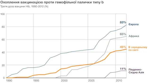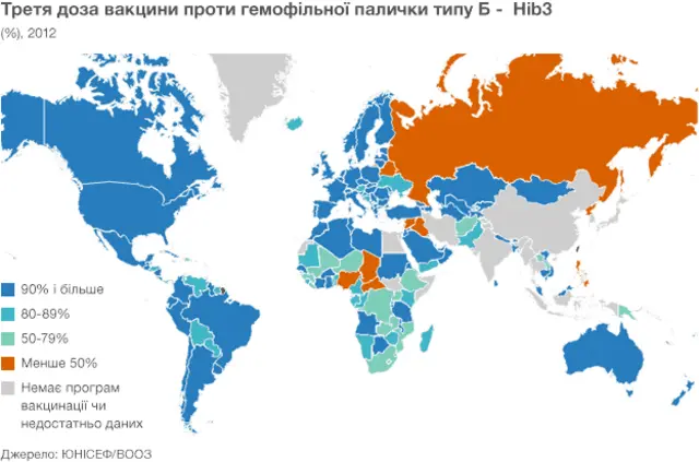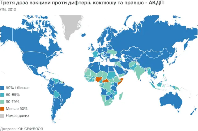 Джерело: оцінки планової імунізації населення від ВООЗ і ЮНІСЕФ за 2012 рік, переглянуті у липні 2013 р.