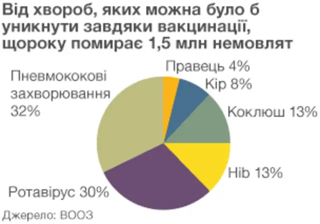 За даними Всесвітньої організації охорони здоров’я (ВООЗ), щороку 1,5 млн дітей віком до п’яти років умирають від хвороб, загрозу яких можна було б відвернути плановою вакцинацією.