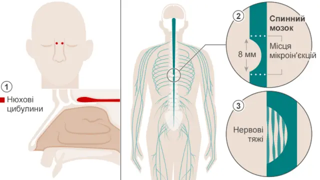 Пацієнтові зробили біля 100 мікроін'єкцій над і під пошкодженим сегментом спинного мозку.