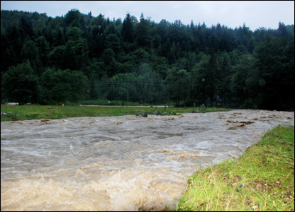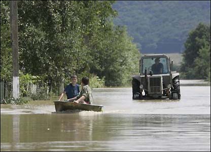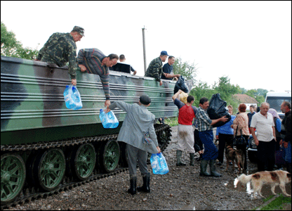 Евакуація людей в одному з гірських районів Львівської обл., 25 липня 2008 р. Фото УНІАН