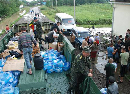 Рятувальники привезли постраждалим харчі та питну воду. 25 липня 2008 року. Львівська область. Фото Укрінформ
