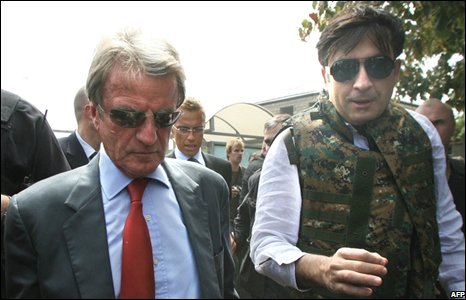 Грузинський президент Саакашвілі і французький міністр Б.Кушнер в Ґорі оцінюють шкоду, завдану в результаті конфлікту.