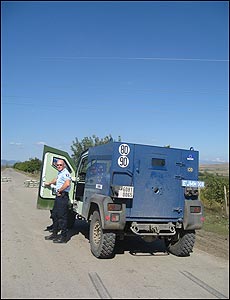 Авто спостерігачів місії Європейського Союзу дорогою до буферної зони. Всі фото Євгенії Руденко, кореспондента Української служби Бі-Бі-Сі у Тбілісі.