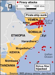 В деяких випадках військовим кораблям НАТО та інших держав вдається відбити напади сомалійських піратів. 14 сомалійців були недавно взяті в полон і доставлені на французький військовий фрегат. Але що з ними робити? Судити? Але де і за чиїми законами?