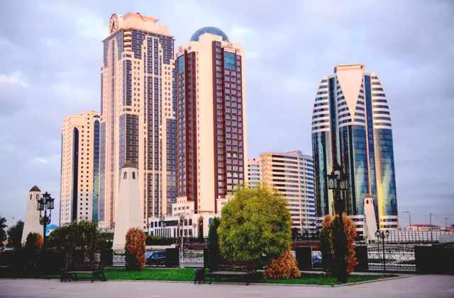 Коли в'їжджаєш на територію Чечні, потрібно проїхати через блокпост, який стережуть озброєні чеченські чоловіки і ввічливо питають мету візиту до республіки. При в'їзді у столицю одразу помітні великі хмарочоси Грозного-Сіті.