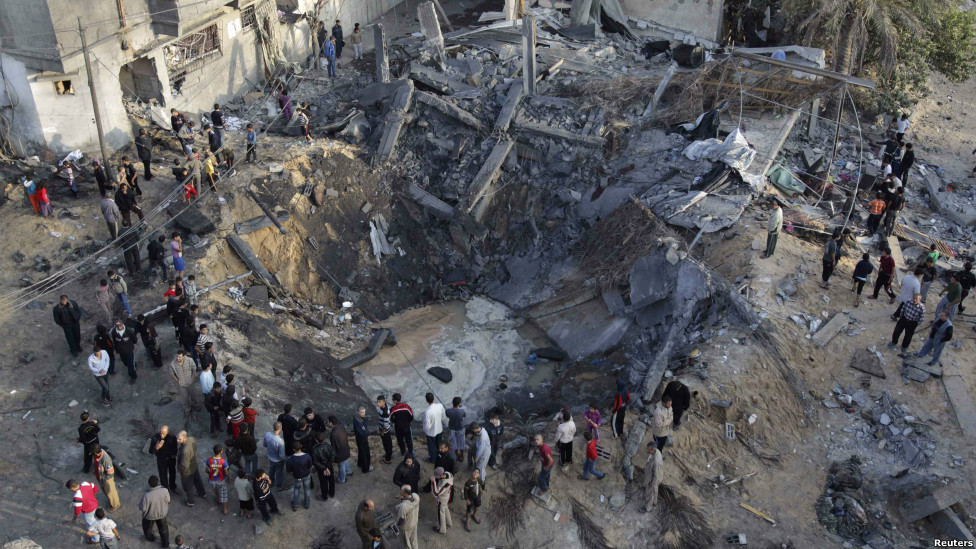 Вирва на місці, де стояв житловий будинок. Ізраїль наполягає на тому, що має право на захист від ракетного вогню палестинських бойовиків.