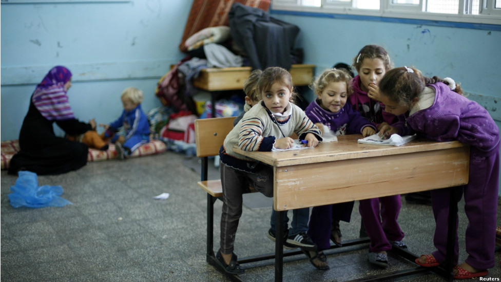 Діти, які втратили домівки і після цього знайшли притулок в школі, створеній за сприяння ООН у місті Газа.