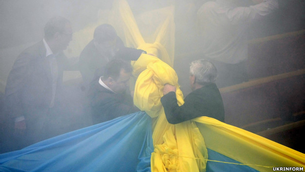 Голосування супроводжувалося бійками депутатів, використанням димових шашок та киданням яєць у спікера Верховної Ради Володимира Литвина.