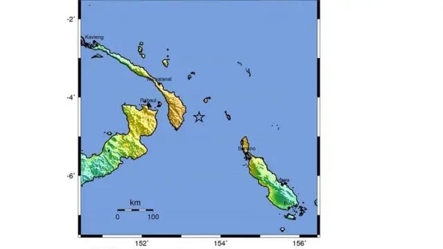 Епіцентр землетрусу розташовувався на глибині 73 км і на відстані 157 км на схід від острова Нова Гвінея.