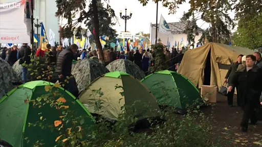 Біля Верховної Ради активісти встановили близько 30 наметів, 9 із них - на проїжджій частині вулиці Грушевського. Решта - в Маріїнському парку.