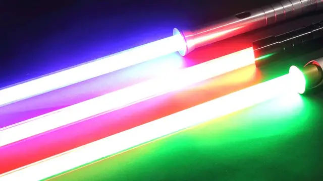 Лезо виготовлено з полікарбонатного матеріалу і має підсвітку, яка живиться від вбудованої батареї.