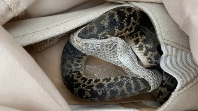 Пані Бокселл знайшла змію - разом зі шкірою, яку та почала скидати - у власному черевику, коли почала розпаковувати речі вдома.