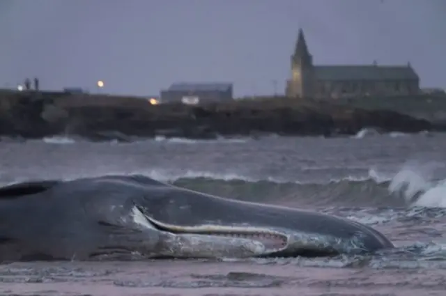 Ссавець довжиною 43 фути (13 м) намагався боротися з обставинами, відійти від узбережжя Нортумберленда, але його викинуло на берег.
