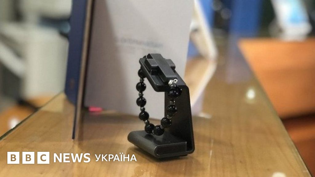 Чотки складаються з 10 чорних агатових та гематитових намистин і металевого хрестика, який реагує на рух.