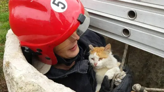 Як рятувальники витягли кота з 15-метрового колодязя
