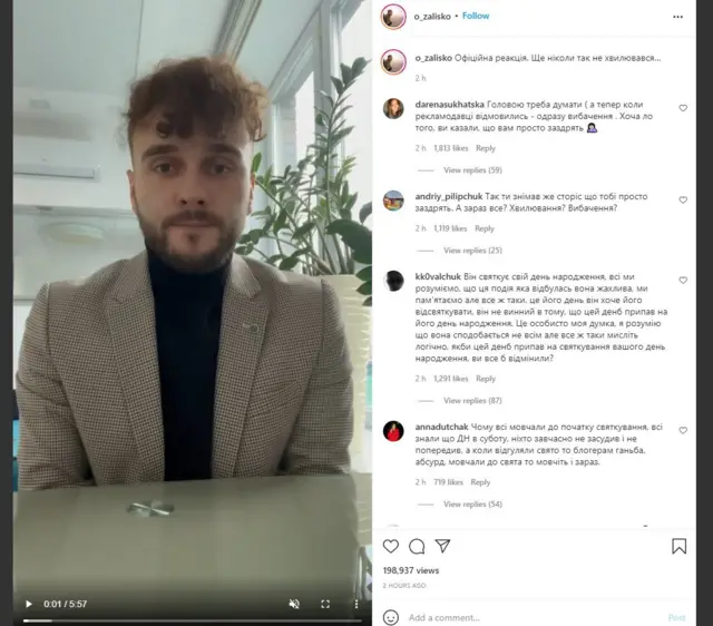 "За дві доби мене позбавлено фактично всіх джерел доходу, найбільші національні бренди розірвали угоду і відмовились від співпраці", - написав Заліско.