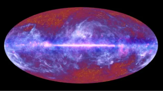Але хоча ці зображення дуже красиві, з точки зору основного завдання програми телескопа "Планк" вони є перешкодою у вивченні фонового випромінювання, яке на знімку відображується жовтим і фіолетовим кольорами. Воно відповідає реліктовому мікрохвильовому випромінюванню Всесвіту, що і є головним об'єктом вивчення для цього орбітального телескопа. Реліктове випромінювання виникло в той момент, коли після Великого Вибуху Всесвіт охолов до тієї межі, коли світло почало розповсюджуватися на значні відстані.