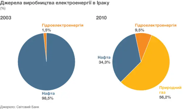 Хоча на нафту припадає найбільша частка ВВП Іраку, країна не має потужностей для переробки достатньої кількості нафти на потреби власного ринку електроенергії.