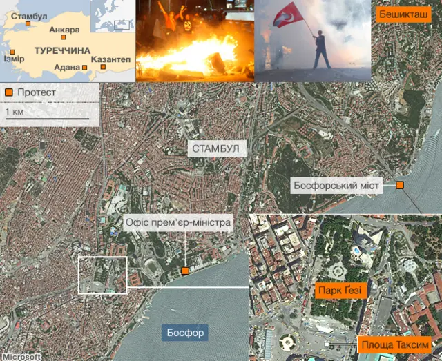 У ніч на понеділок сутички демонстрантів і поліції в Стамбулі супроводжувалися насильством, поліція застосувала проти натовпу, який прямував до офісу прем'єр-міністра, сльозогінний газ.