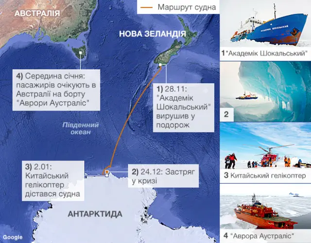 Однак згодом китайський вертоліт евакуював пасажирів судна, що опинилося в крижаній пастці.