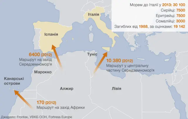 Хоча загальне число виросло на 48%, це однаково значно менше, ніж у 2011 році, коли внаслідок "Арабської весни" кількість нелегальних мігрантів до країн ЄС зросла до 141 тисячі.