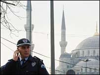 Цю зустріч додали до графіку візиту Папи Римського в останню хвилину, і вбачають її як примирливий жест з боку турецької сторони. Напередодні турецький прем’єр наполягав, що в час візиту Папи перебуватиме на самміті НАТО у Ризі. Зустріч понтифікат з Реджепом Ердоганом тривала близько двадцяти хвилини і була спрямована послабити напруження і надати візиту понтифіка позитивний тон. Папу гостро критикували за його висловлювання, в якому він ніби пов’язав насильство і Іслам. Сьогодні Бенедикт 16 сказав турецькому прем’єру, що прибув для налагодження дружніх зв’язків та побудови так званого мосту між різними культурами та релігіями. Минулими вихідним десятки тисяч людей вийшли на вулиці Стамбула із закликами до Бенедикта ХVI або взагалі не приїздити до Туреччини, або вибачитися за його висловлювання, в якому Іслам нібито пов’язувався зі злом та насильством. В інтерв’ю кореспондентові Бі-Бі-Сі голова Української Греко-католицької церкви кардинал Любомир Гузар назвав візит понтифіка до Туреччини мужнім кроком і висловив надію на те, що він сприятиме порозумінню між двома релігіями. | Також на цю тему Папа Римський відвідує Туреччину28 листопада 2006 | Головна сторінка Папа про одруження священиків16 листопада 2006 | Головна сторінка Папа закликав релігії відмовитися від насильства25 вересня 2006 | Головна сторінка Папа жалкує з того, що міг образити мусульман16 вересня 2006 | Головна сторінка Мусульмани обурені заявами Папи про іслам 15 вересня 2006 | Головна сторінка | ||||||||||||||||||||||||||||||||||||||||||||||||||||||||||||||||||||||||||||||||||