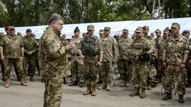 "Мінські домовленості чітко передбачають виведення окупаційних військ з усієї української території, відновлення українського контролю над державним кордоном, запровадження міжнародної озброєної поліцейської місії ОБСЄ, яка для контролю виконання стане на лінії зіткнення, візьме під охорону до виведення в РФ склади відведеної зброї і поставить на всіх пунктах пропуску свої постійно діючі патрулі для того, щоб унеможливити постачання нових підрозділів російських військ, амуніції, озброєння, повернення найманих бойовиків", - сказав глава держави.