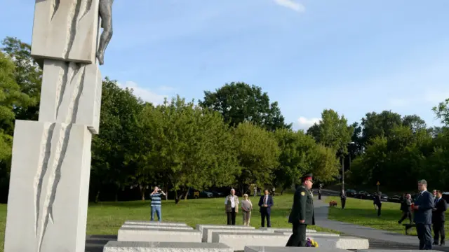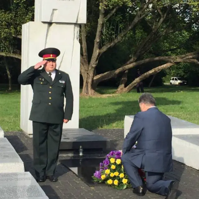 Президент Петро Порошенко та інші українські посадовці поклали квіти до пам'ятника жертвам Волинської трагедії у Варшаві.
