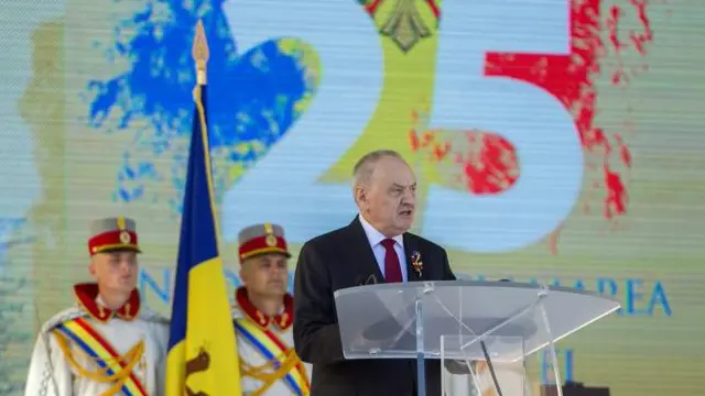 Прихильники опозиції скандували "Злодії!" і "Ганьба!" на адресу президента Ніколає Тімофті та інших молдовських керівників, які брали участь у церемонії покладання вінків до пам'ятника національному герою Молдови Стефану Великому.